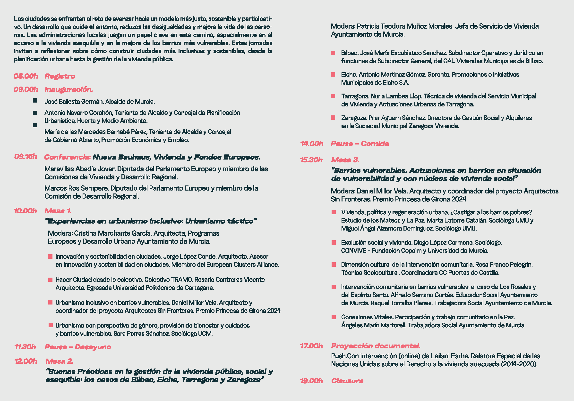 Organizan: Servicio de Vivienda y Servicio de Programas Europeos del Ayuntamiento de Murcia. CONVIVE - Fundación Cepaim, RASINET